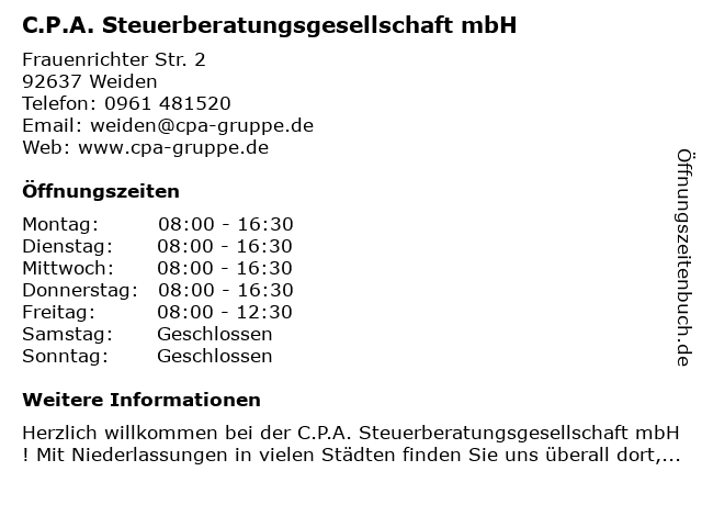 Branchen & Suchbegriffe zu C.P.A. Steuerberatungsgesellschaft mbH:c.p.a., mbh, steuerberatungsgesellschaft |