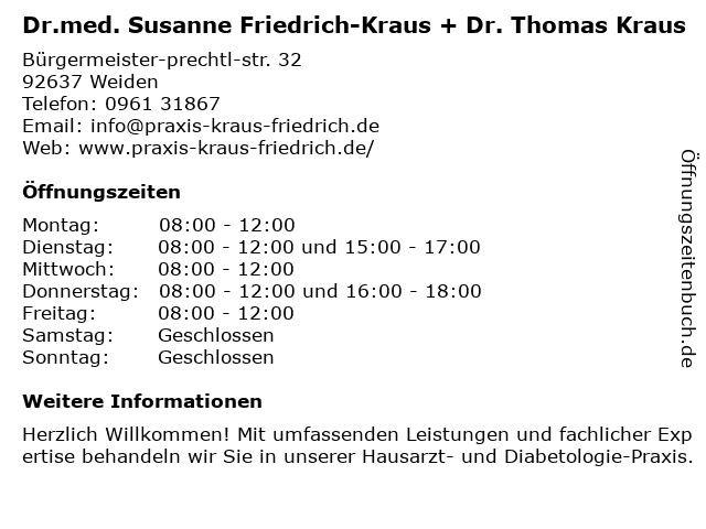 Branchen & Suchbegriffe zu Dr.med. Susanne Friedrich-Kraus + Dr. Thomas Kraus:diabetes-zentrum, dr., dr.med., friedrich, gesundheitsberatung, kraus, susanne, thomas |