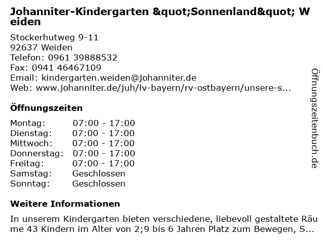Branchen & Suchbegriffe zu Johanniter-Kindergarten "Sonnenland" Weiden:"sonnenland", agentur für kinderbetreuung, gemeinnützige organisation, hilfsorganisation, johanniter, kindergarten, sozialarbeit, verband, wohlfahrtseinrichtung |