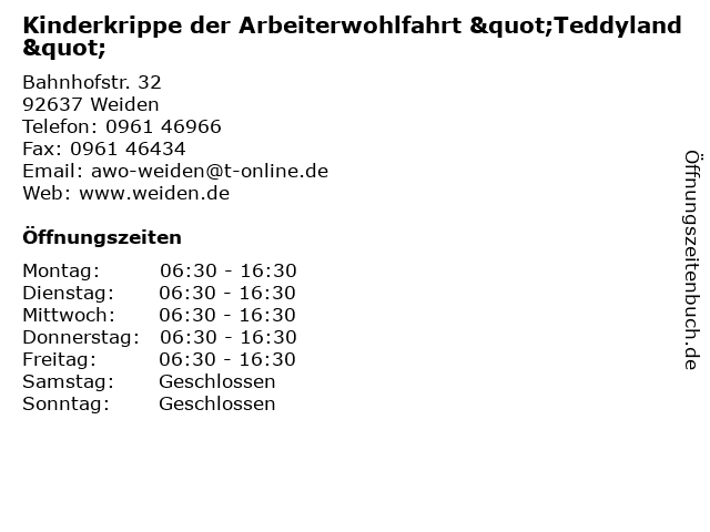 Branchen & Suchbegriffe zu Kinderkrippe der Arbeiterwohlfahrt "Teddyland":"teddyland", arbeiterwohlfahrt, aufsicht, betreuung, kinder, kinderkrippe |