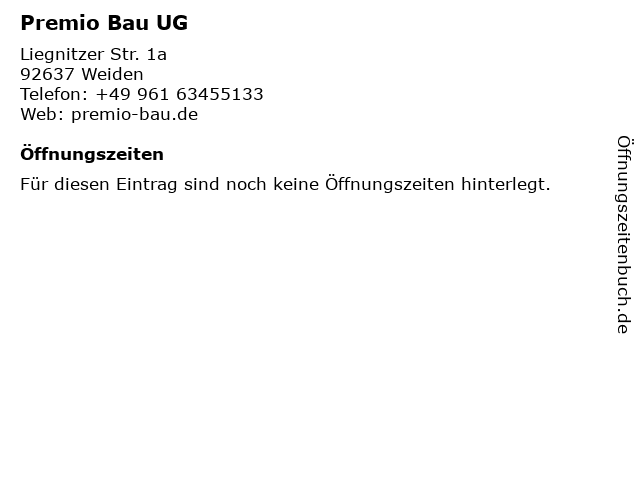 | Öffnungszeiten Premio Bau UG in Weiden anzeigen | |