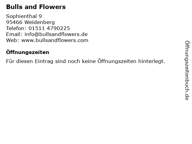 | Öffnungszeiten Bulls and Flowers in Weidenberg anzeigen | |