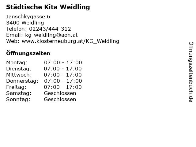 | Öffnungszeiten Städtische Kita Weidling in Weidling anzeigen | |