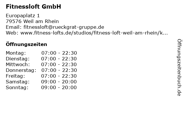 | Öffnungszeiten Fitnessloft GmbH in Weil am Rhein anzeigen | |