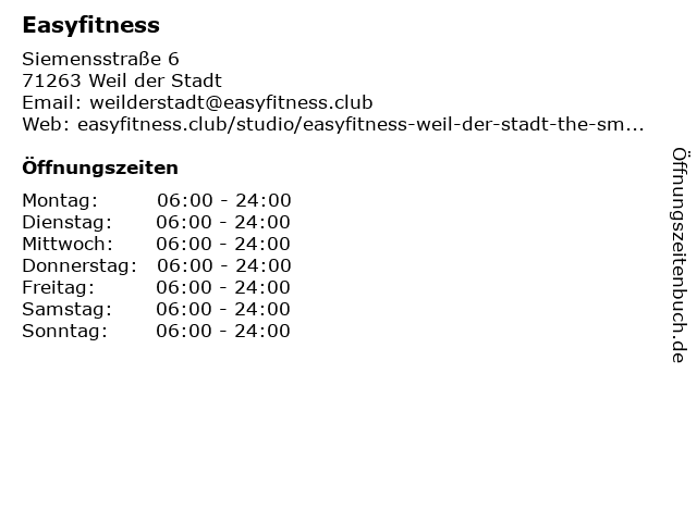 | Öffnungszeiten Easyfitness in Weil der Stadt anzeigen | |
