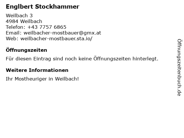 | Öffnungszeiten Englbert Stockhammer in Weilbach anzeigen | |