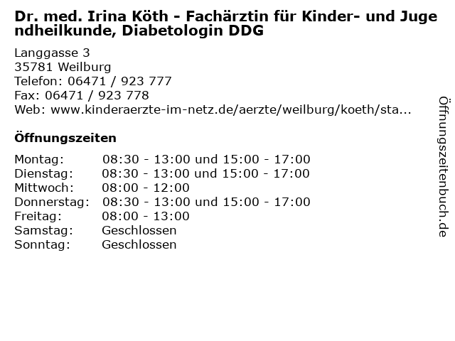 Branchen & Suchbegriffe zu Dr. med. Irina Köth - Fachärztin für Kinder- und Jugendheilkunde, Diabetologin DDG:arzt, ddg, diabetologin, doktor, dr., facharzt, fachärztin, heilkundiger, irina, jugendheilkunde, kinder, köth, med., mediziner |