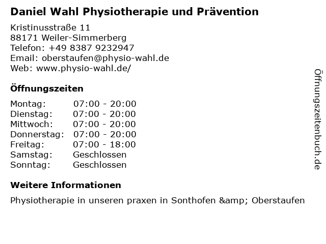 1 Therapiezentrum Philipp Herzberger - Physiotherapie Wellness Prävention (Entfernung: 5,11 km) Bräuhausstr. 28, 88175 Scheidegg 6 |