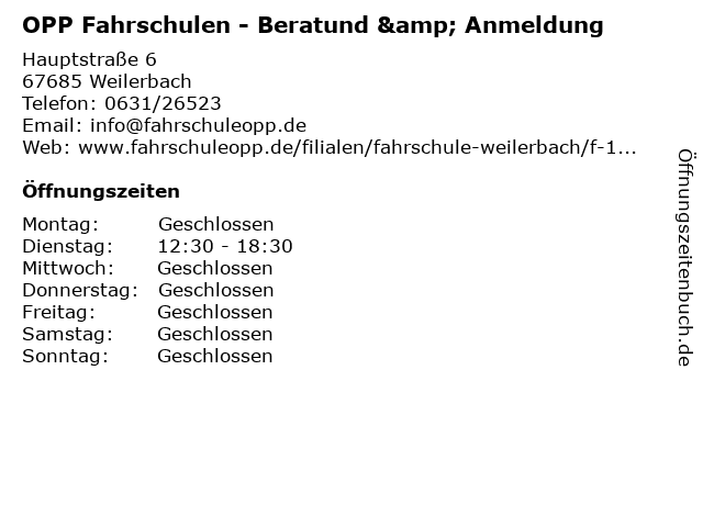 2 OPP Fahrschulen - Beratund & Anmeldung (Entfernung: 6,78 km) Steinwendener Straße 15, 66877 Ramstein-Miesenbach 3 OPP Fahrschulen - Beratund & Anmeldung (Entfernung: 7,14 km) Hauptstraße 64a, 66879 Reichenbach-Steegen 6 |