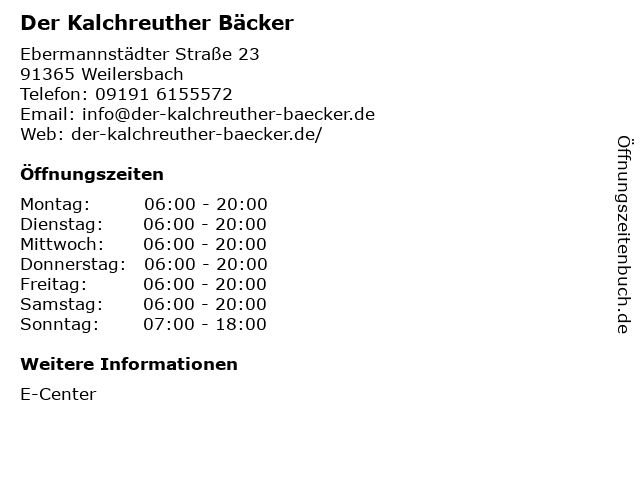 Öffnungszeiten Der Kalchreuther Bäcker in Weilersbach anzeigen | |