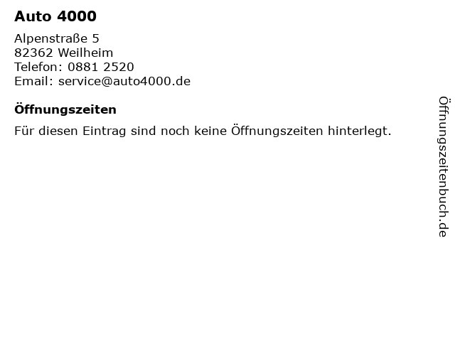 | Öffnungszeiten Auto 4000 in Weilheim anzeigen | |