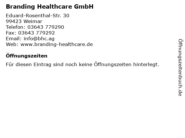 | Adresse Branding Healthcare GmbH in Weimar anzeigen |