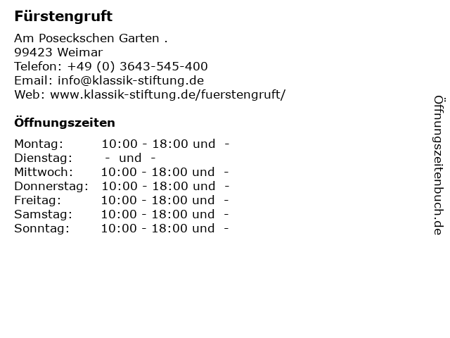 | Öffnungszeiten Fürstengruft in Weimar anzeigen | |