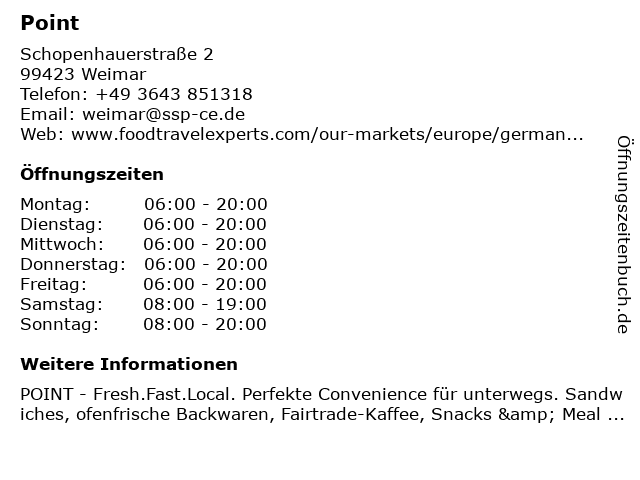 | Öffnungszeiten Point in Weimar anzeigen | |