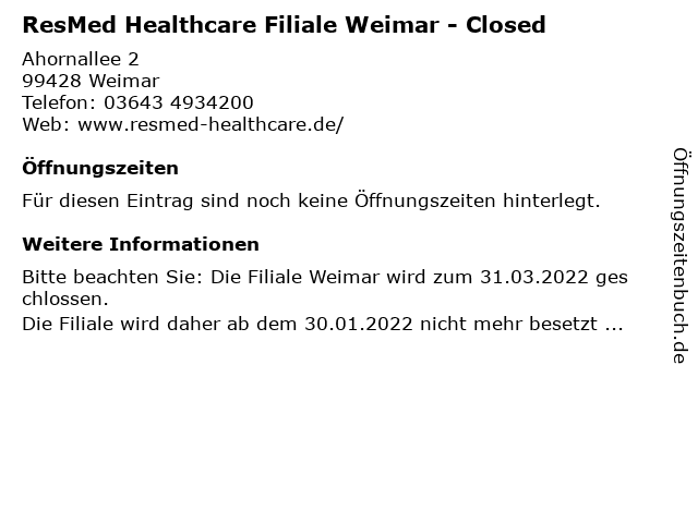 | ResMed Healthcare Filiale Weimar - Closed anrufen | |