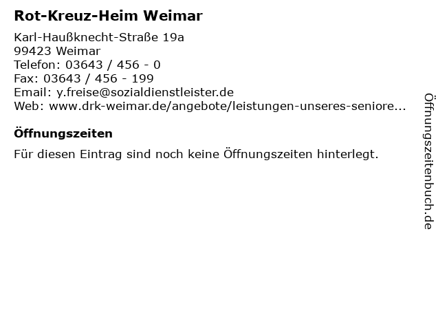 | Öffnungszeiten Rot-Kreuz-Heim Weimar in Weimar anzeigen | |