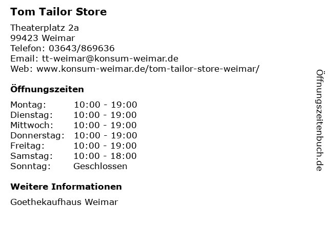 | Adresse Tom Tailor Store in Weimar anzeigen |