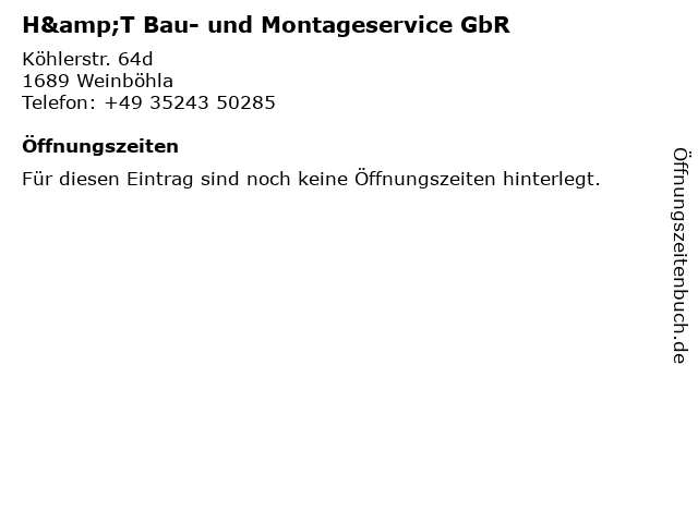 | H&T Bau- und Montageservice GbR anrufen | |