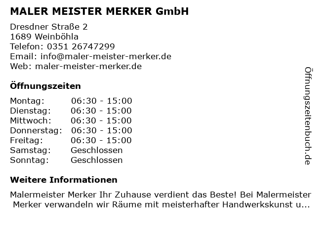 | Adresse MALER MEISTER MERKER GmbH in Weinböhla anzeigen |