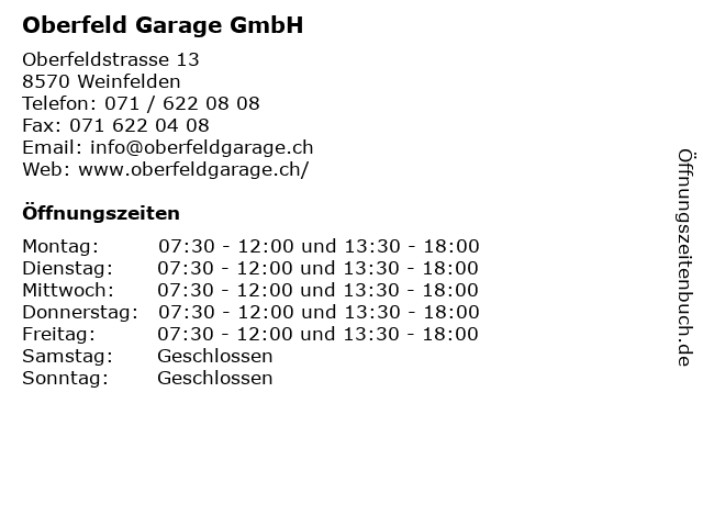 | Öffnungszeiten Oberfeld Garage GmbH in Weinfelden anzeigen | |