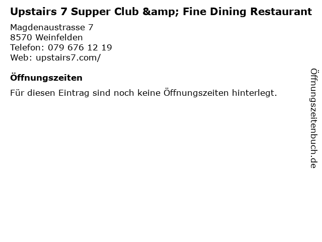 | Upstairs 7 Supper Club & Fine Dining Restaurant anrufen | |
