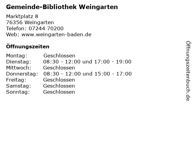 Branchen & Suchbegriffe zu Gemeinde-Bibliothek Weingarten:bibliothek, bücherei, gemeinde |
