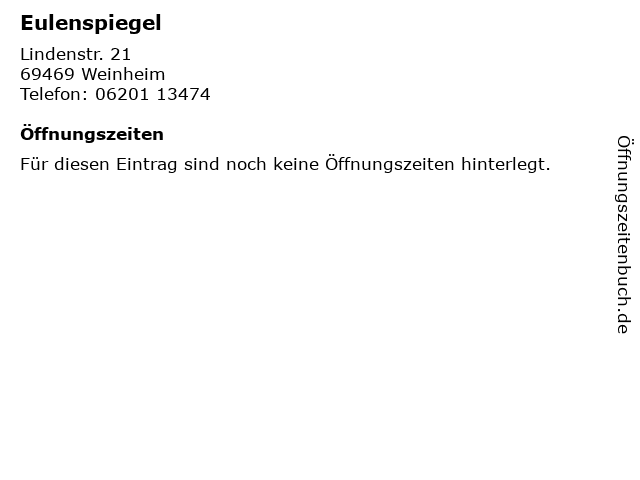 | Öffnungszeiten Eulenspiegel in Weinheim anzeigen | |