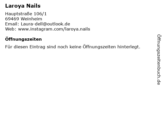 | Öffnungszeiten Laroya Nails in Weinheim anzeigen | |