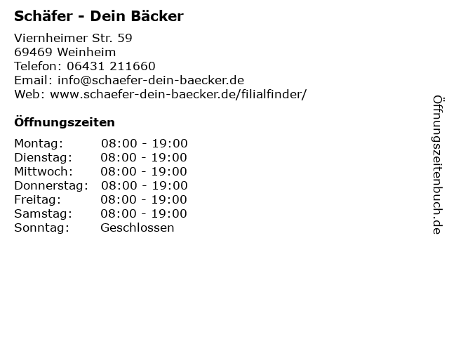| Öffnungszeiten Schäfer - Dein Bäcker in Weinheim anzeigen | |