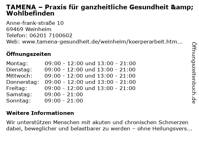 Branchen & Suchbegriffe zu TAMENA – Praxis für ganzheitliche Gesundheit & Wohlbefinden:ganzheitliche, gesundheit, praxis, tamena, wohlbefinden, – |