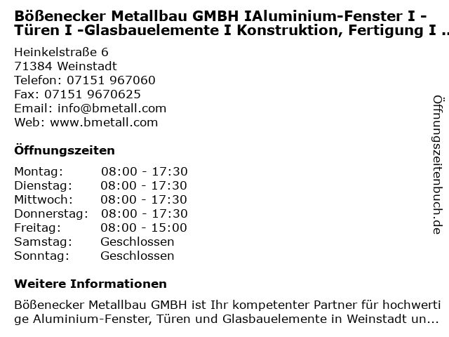 Branchen & Suchbegriffe zu Bößenecker Metallbau GMBH IAluminium-Fenster I -Türen I -Glasbauelemente I Konstruktion, Fertigung I Montage Großraum Stuttgart:bößenecker, fenster, fertigung, glasbauelemente, großraum, ialuminium, konstruktion, metallbau, montage, türen |