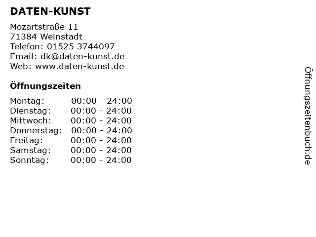 Öffnungszeiten DATEN-KUNST in Weinstadt anzeigen | |