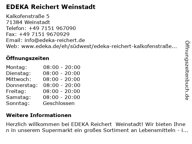| Öffnungszeiten EDEKA Reichert Weinstadt in Weinstadt anzeigen | |