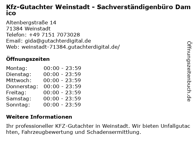 Branchen & Suchbegriffe zu Kfz-Gutachter Weinstadt - Sachverständigenbüro Damico:damico, fahrzeugbewertung, gutachten digital, gutachter, individuelle beratung, kfz, kfz gutachter weinstadt, kfz schaden, kundenbewertung, kurzfristige begutachtung, professionelle bewertung, reparaturkosten, sachverständigenbüro, sachverständigenbüro damico, schadengutachten, schadenregulierung, schnelle kommunikation, schnelle schadensmeldung, transparente gutachten, unabhängige sachverständige, unfallgeschädigte, unfallgutachten, versicherungsabwicklung, wertminderung |