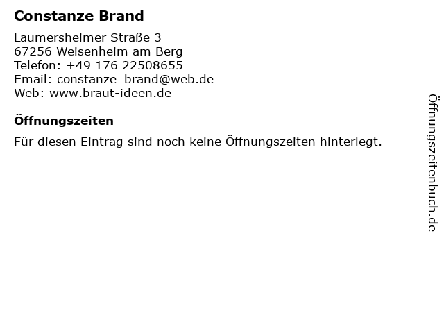| Öffnungszeiten Constanze Brand in Weisenheim am Berg anzeigen | |