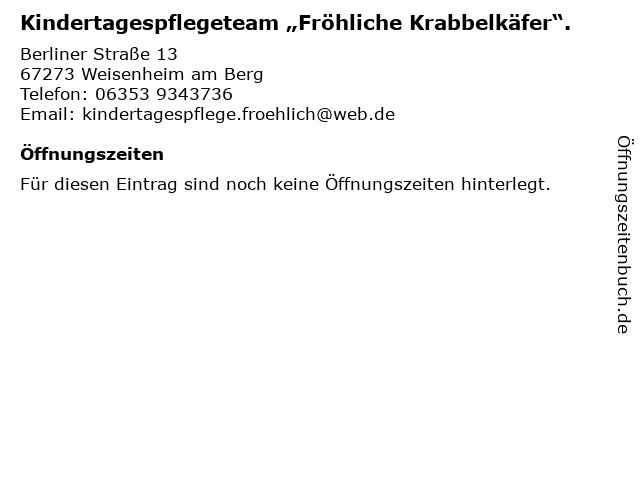 | Kindertagespflegeteam „Fröhliche Krabbelkäfer“. anrufen | |