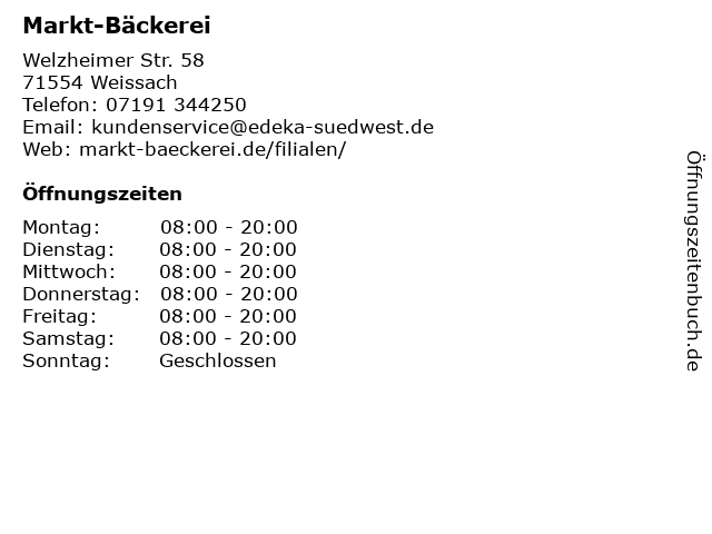 | Öffnungszeiten Markt-Bäckerei in Weissach anzeigen | |