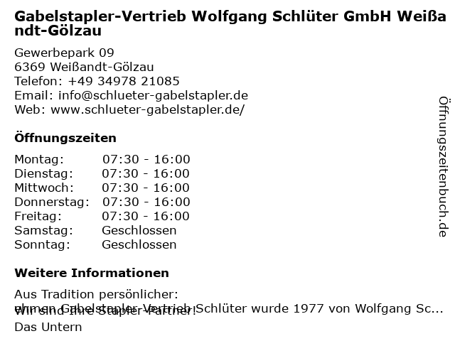 Branchen & Suchbegriffe zu Gabelstapler-Vertrieb Wolfgang Schlüter GmbH Weißandt-Gölzau:flurförderzeuge, gabelstapler, gölzau, material handling, materialtransport, schlüter, stapler, toyota, vertrieb, weißandt, wolfgang |