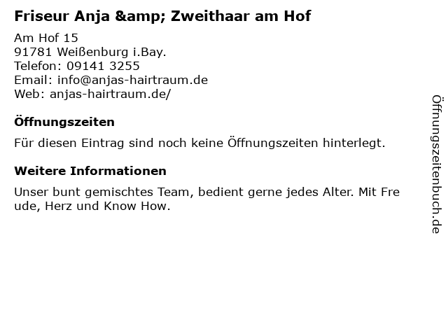 | Friseur Anja & Zweithaar am Hof anrufen | |