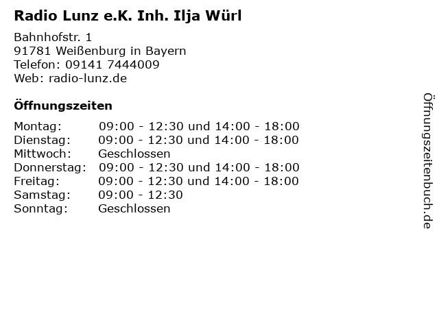 Branchen & Suchbegriffe zu Radio Lunz e.K. Inh. Ilja Würl:e.k., ilja, lunz, radio, würl |