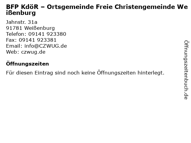 | BFP KdöR – Ortsgemeinde Freie Christengemeinde Weißenburg anrufen | |