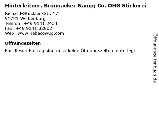 | Hinterleitner, Brunnacker & Co. OHG Stickerei anrufen | |