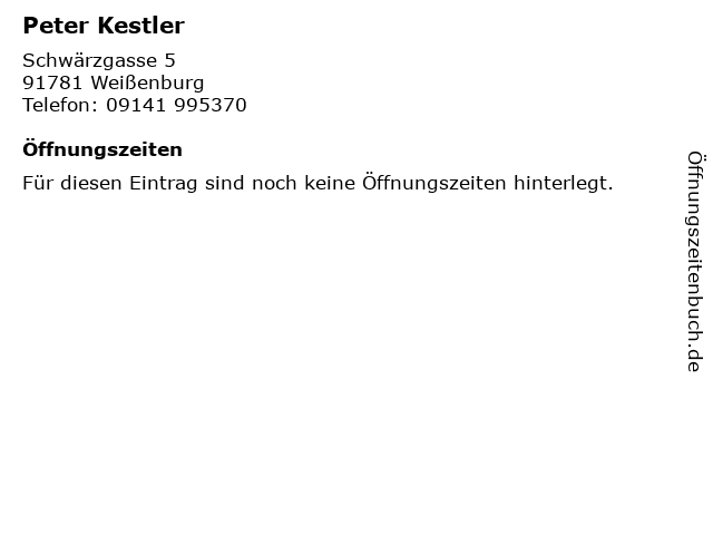 | Öffnungszeiten Peter Kestler in Weißenburg anzeigen | |