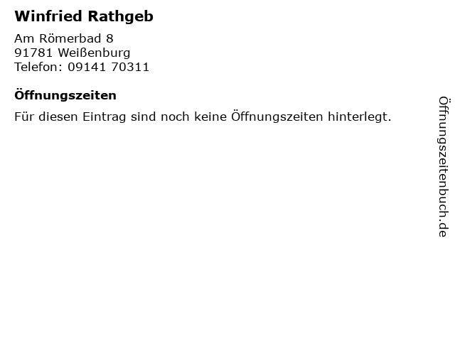 | Öffnungszeiten Winfried Rathgeb in Weißenburg anzeigen | |