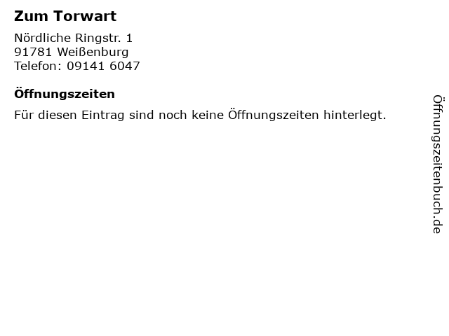 | Öffnungszeiten Zum Torwart in Weißenburg anzeigen | |