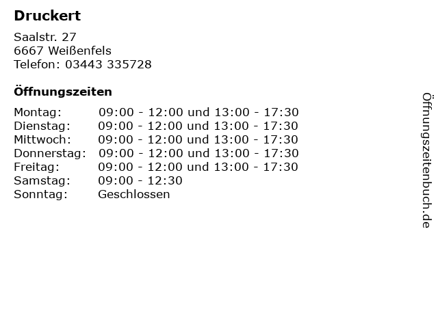| Öffnungszeiten Druckert in Weißenfels anzeigen | |