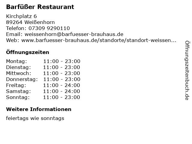 | Öffnungszeiten Barfüßer Restaurant in Weißenhorn anzeigen | |