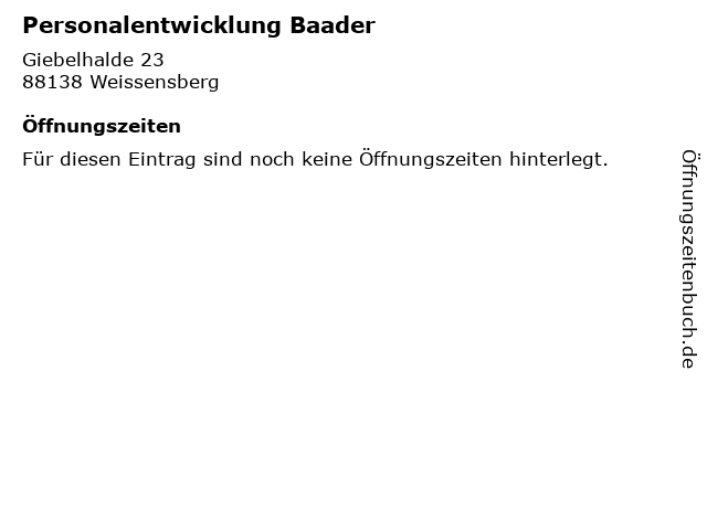 | Öffnungszeiten Personalentwicklung Baader in Weissensberg anzeigen | |