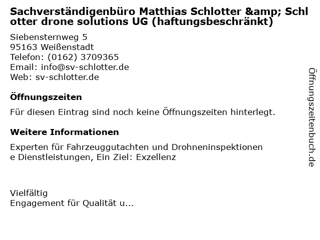 | Sachverständigenbüro Matthias Schlotter & Schlotter drone solutions UG (haftungsbeschränkt) anrufen | |