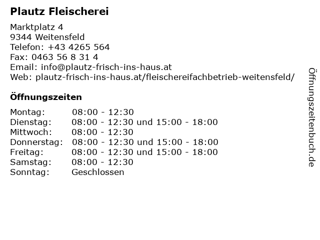 | Öffnungszeiten Plautz Fleischerei in Weitensfeld anzeigen | |